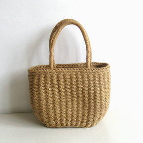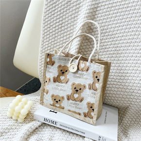 小熊亚麻手提袋女外出手拎包2021网红ins日系小...