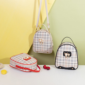 2022韩版女士苏格兰格子小背包外贸批发秋冬新品猫...