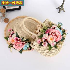 夏款手工编包包手工花朵小清新花环手提编包女款编织包...