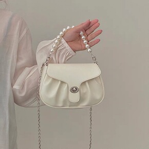 少女可爱珍珠链条包女2022春夏新款时尚百搭褶皱云...