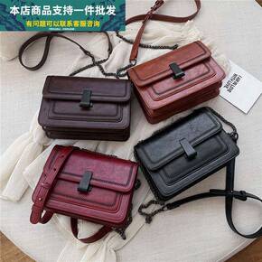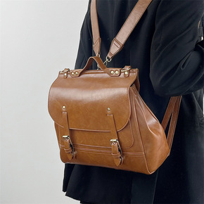 复古文艺双肩斜挎邮差包包女bag新款高级感油蜡皮学...