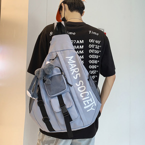 多口袋胸包男大容量简约日系学生单肩背包街头斜挎包潮...
