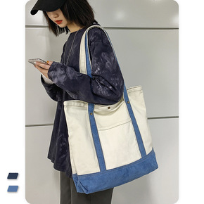 慵懒风帆布大包包女ins大容量韩版手提袋日系简约百...