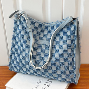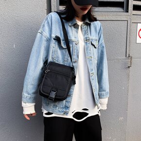 韩国ins简约纯色潮酷牛仔单肩包大容量复古邮差包文...