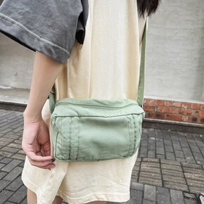 日韩水洗做旧帆布邮差包简约百搭经典迷彩托特包女学生...