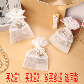 白色玫瑰韩版蕾丝抽绳收纳袋女生可爱收纳袋透明化妆品...