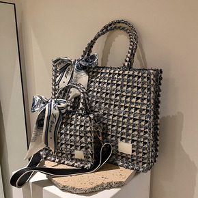 大号格子单肩背包布艺时尚手提包潮女大容量洗澡健身妈...