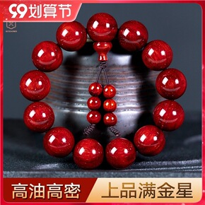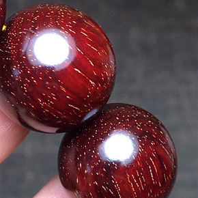 正宗野生顺纹印度小叶紫檀 金星鸡血红手串 老料佛珠...