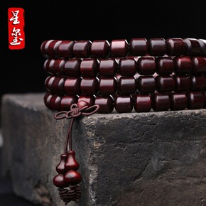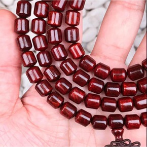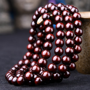 小叶紫檀满金星桶珠老料高密鸡血红8mm108颗佛珠...