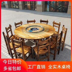农家乐桌椅组合大排档圆形火锅桌电磁炉一体饭店餐馆实...