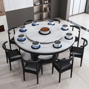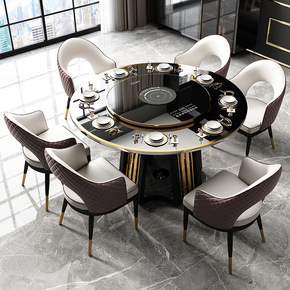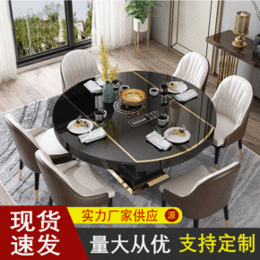 大理石圆桌带转盘轻奢极简家用酒店饭桌电磁炉圆形实木...