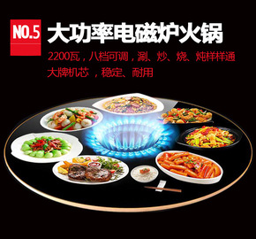实木大理石火锅桌子商用串串香圆桌电磁炉涮烤无烟一体...