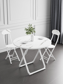 圆桌折叠洽谈餐桌椅组合家用小户型吃饭桌子简易圆形木...