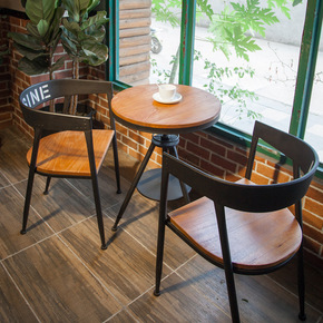 美式铁艺实木复古圆桌 奶茶店户外休闲桌椅 餐桌阳台...
