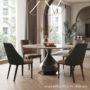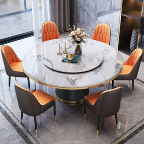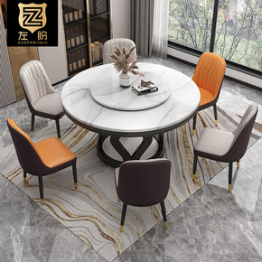 轻奢大理石餐桌椅组合圆桌现代简约家用圆形小户型带转...