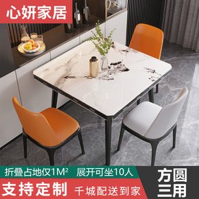 岩板折叠餐桌家用小户型实木方形饭桌可变圆桌伸缩电磁...