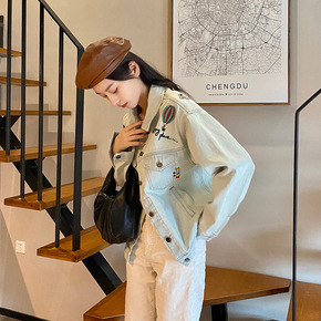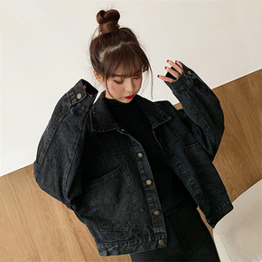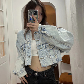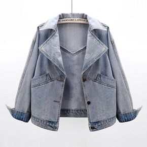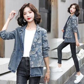 2022春秋新款韩版百搭西装领牛仔外套女短款修身夹...