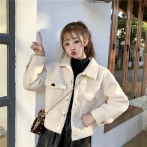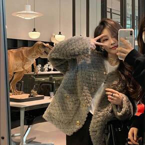 羊羔毛短外套法式小香风仿羊羔毛外套短款女2021冬...
