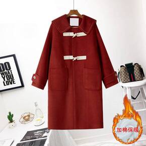牛角扣大衣女牛角扣毛呢大衣中长款加厚加绒冬季学生森...