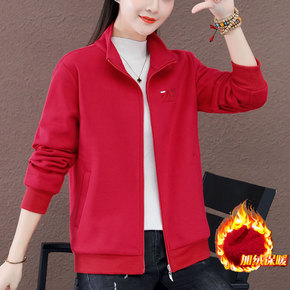 休闲运动短外套女加绒冬装2021新款韩版立领开衫加...