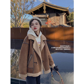 实拍2021年秋冬新款气质通勤羊羔毛外套韩版宽松显...