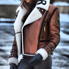 文立大厂花小姐小泰迪羊羔毛外套女秋冬加厚机车浅卡其...