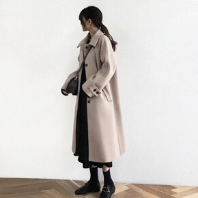 2021秋冬季新款韩版中长款流行过膝小个子赫本风呢...