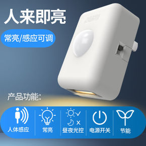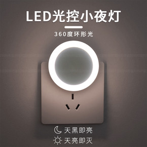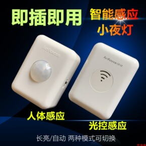 迷你插座插电led小夜灯人体感应光控起夜灯插头灯卧...