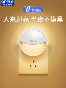欧普遥控光控人体感应小夜灯节能卧室插电款床头睡眠婴...