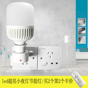 LED遥控节能插座插电带开关超亮小夜灯壁灯卧室床头...