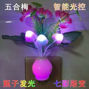 led光控自动感应创意护眼蘑菇小夜灯插电节能床头婴...