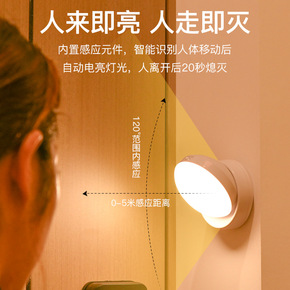 智能充电LED人体感应灯自动光控家用起夜床头睡眠柔...