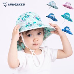 2021郎真春夏新款儿童护颈帽花色印花太阳帽 户外...