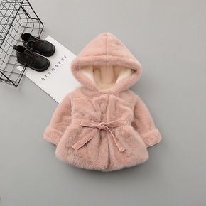 洋气冬装气质公主外套仿皮草女童加厚连帽毛毛大衣一件...