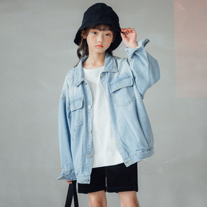 女童2021春秋新品泡泡袖牛仔外套童装宝宝长袖夹克...