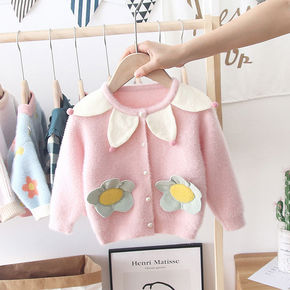 女童水貂绒外套毛衣开衫洋气超仙2020儿童毛线衣女...