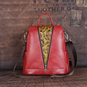 复古风手工擦色女包女士三用手提斜跨双肩包牛皮立体压...