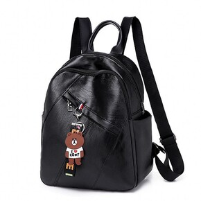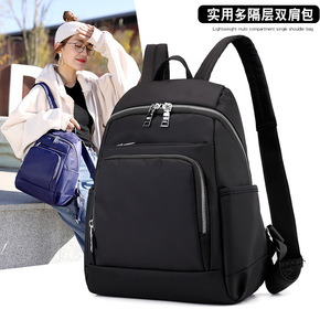 新款双肩包女韩版休闲时尚背包黑色学生书包多层妈咪双...