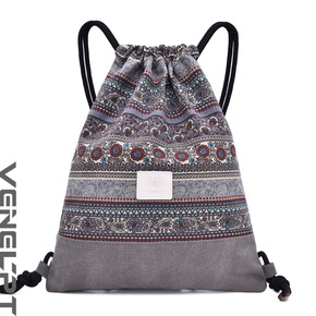 亚马逊民族风帆布包束口袋双肩包波西米亚帆布袋抽绳女...