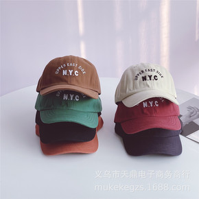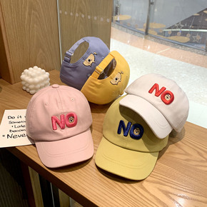 韩风儿童棒球帽子糖果色大字母贴标做旧男女宝宝出游防...