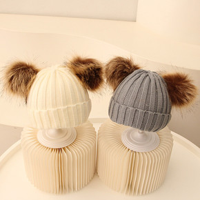 儿童毛线帽秋冬男女童针织套头帽韩版啾啾可爱超萌冬季...