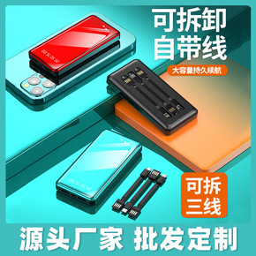 批发大容量20000毫安拆卸自带线充电宝 超薄镜面...
