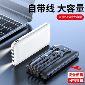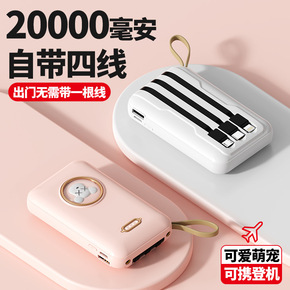 迷你自带线充电宝20000毫安超薄小巧便携大容量快...