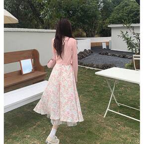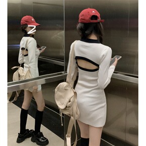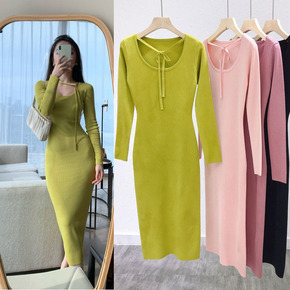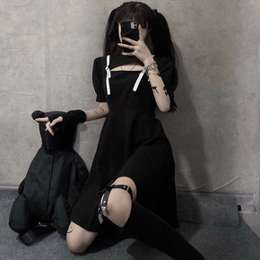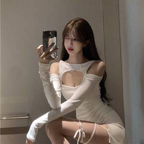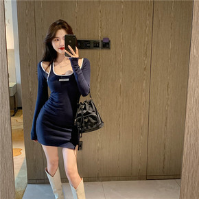 女纯欲风心机开叉系带裙子夏季小个子修身包臀长袖辣妹...