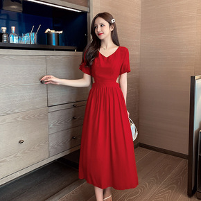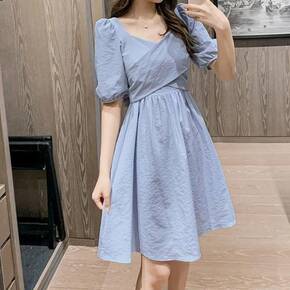 2022早春连衣裙法式小众心机褶皱收腰显瘦洋气泡泡...