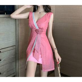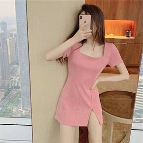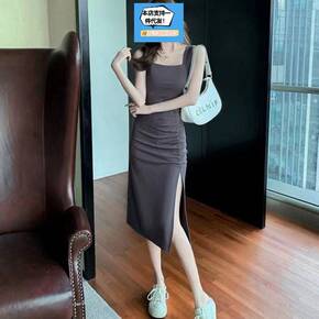 连衣裙小心机侧开叉连衣裙女新款2022夏季气质修身...