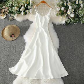 超仙温柔风长裙女海边度假裙ins超火心机露背绑带收...