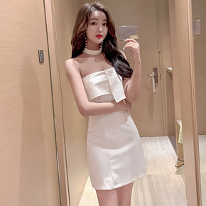INS网红女主播修身气质短裙2019夏季裹胸露背小...