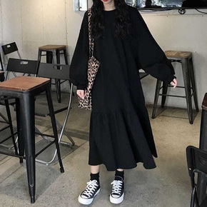 荷叶边连衣裙大码2022早春新款胖纯欲小心机纯色蓬...