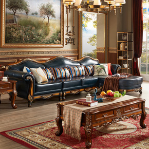 美式全实木转角沙发L型贵妃组合欧式头层小户型客厅接...